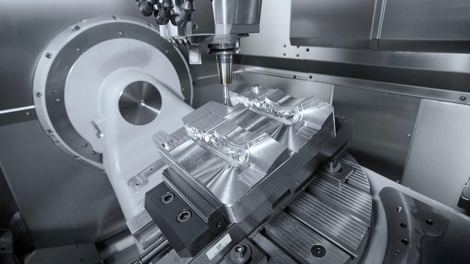 五軸加工中心支持多種刀具類型,選擇合適的刀具對加工效率和質(zhì)量至關重要。根據(jù)加工材料和工藝要求,選擇合適的刀具,并在數(shù)控系統(tǒng)中設置刀具補償、進給速度、主軸轉(zhuǎn)速等參數(shù)。