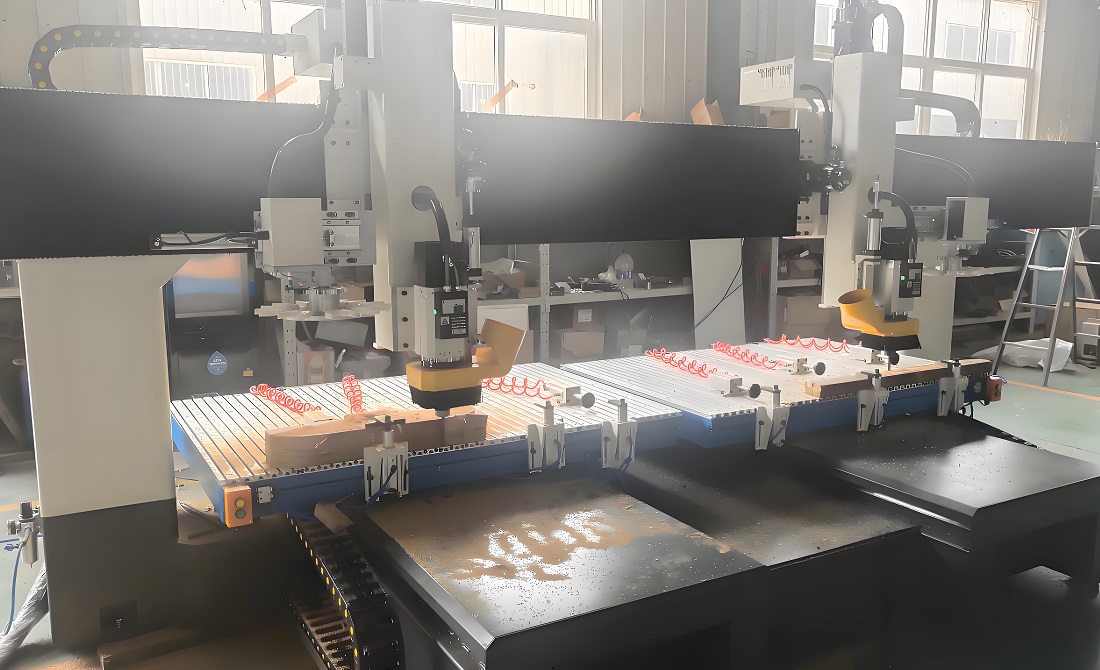 在實木家具、定制門窗等高端木制品行業(yè),企業(yè)正面臨個性化需求激增、交貨周期縮短的雙重挑戰(zhàn)。傳統(tǒng)單主軸加工設(shè)備因工序分散、裝夾頻繁,難以滿足高效生產(chǎn)與高精度加工的復(fù)合需求。雙主軸木工加工中心憑借其“雙主軸協(xié)同作業(yè)+五軸聯(lián)動技術(shù)”的核心優(yōu)勢,成為破解行業(yè)痛點(diǎn)的關(guān)鍵設(shè)備,助力企業(yè)實現(xiàn)產(chǎn)能躍升與品質(zhì)突破。