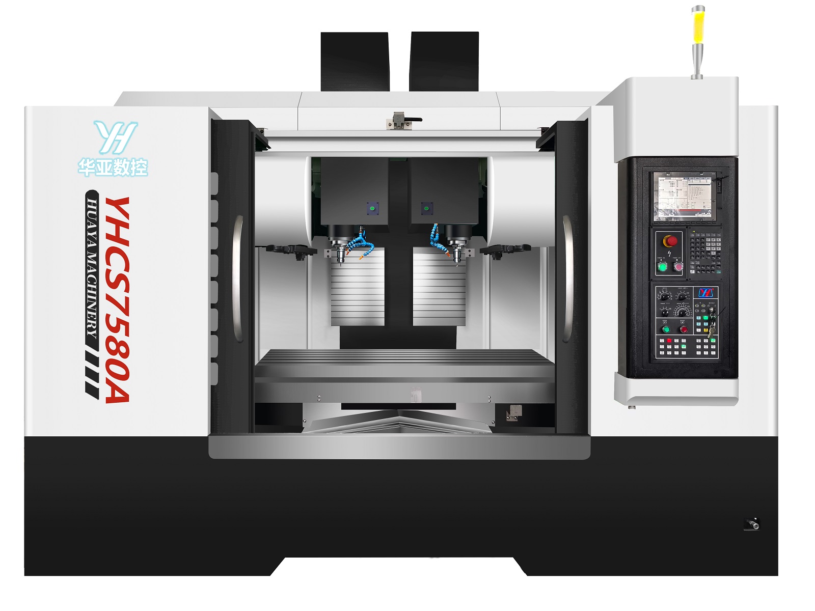 傳統(tǒng)單主軸加工中心受限于機械結(jié)構(gòu),復(fù)雜零件需多次裝夾定位,誤差累積導(dǎo)致良品率波動。華亞數(shù)控自主研發(fā)的YHCS系列雙主軸鉆攻中心,通過平行布局的雙主軸設(shè)計實現(xiàn)"雙工位同步加工",在加工手機通訊精密零件時,可同時完成兩個相同零件的鉆孔、攻絲、銑削等工序。實測數(shù)據(jù)顯示,該方案使加工效率提升100%,場地占用減少50%,人工成本降低40%,真正實現(xiàn)"降本增效"的雙重目標。
